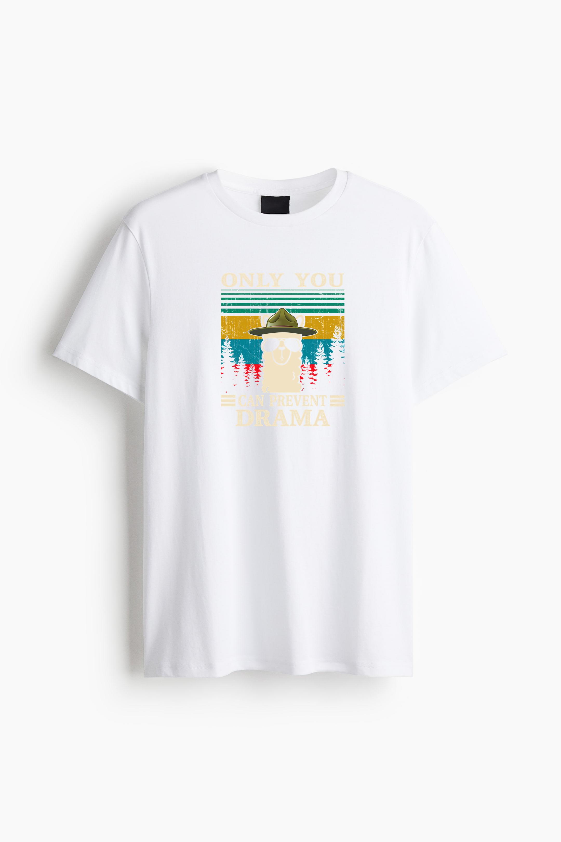 • Llama Camping Only You Can Prevent Drama Cotton T-Shirt