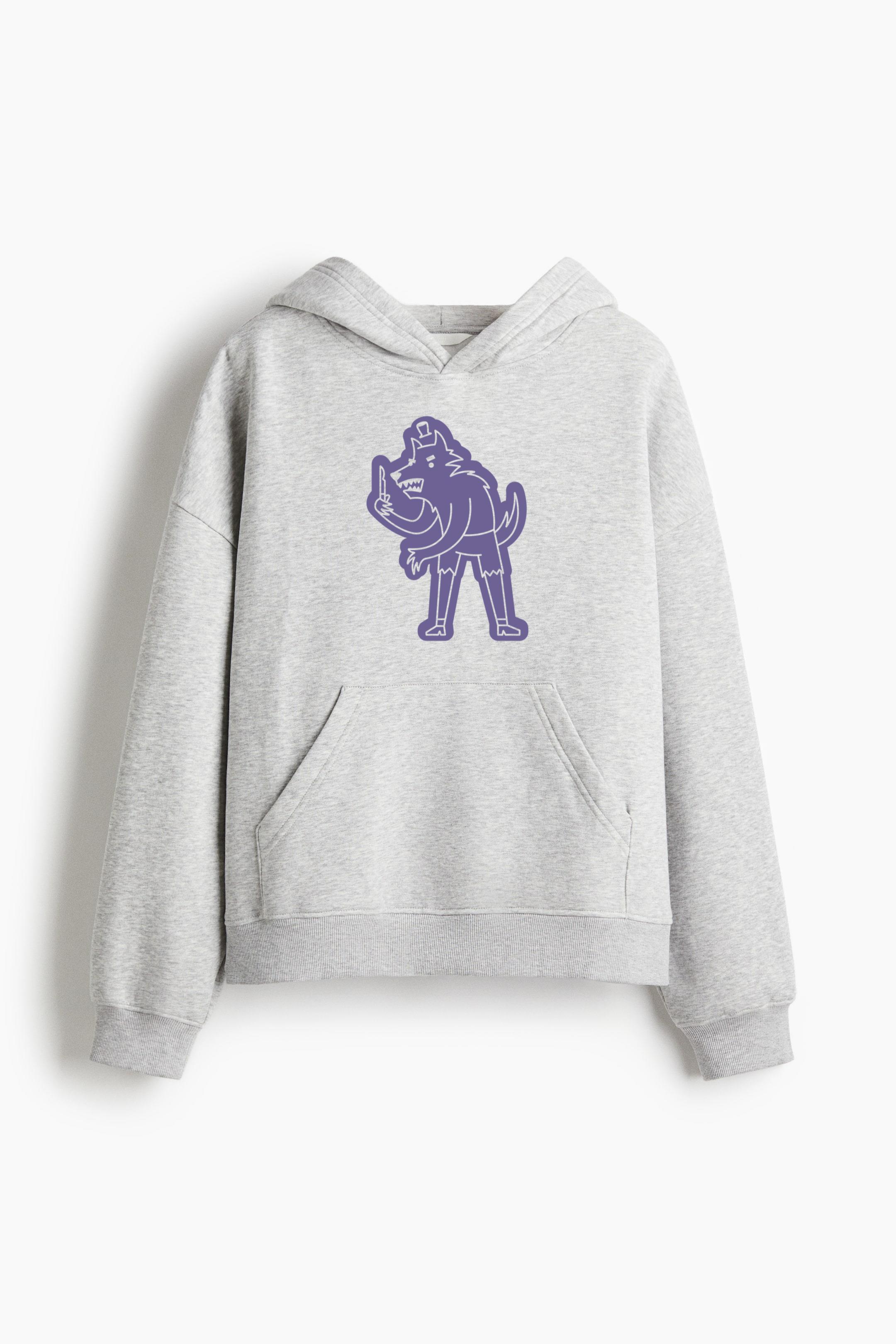 Angry Werewolf Character Cutout Loose-Fit Printed Hoodie Loose-Fit Printed Hoodie – Soft Cotton-Blend Hoodie with Printed Design and Relaxed Silhouette