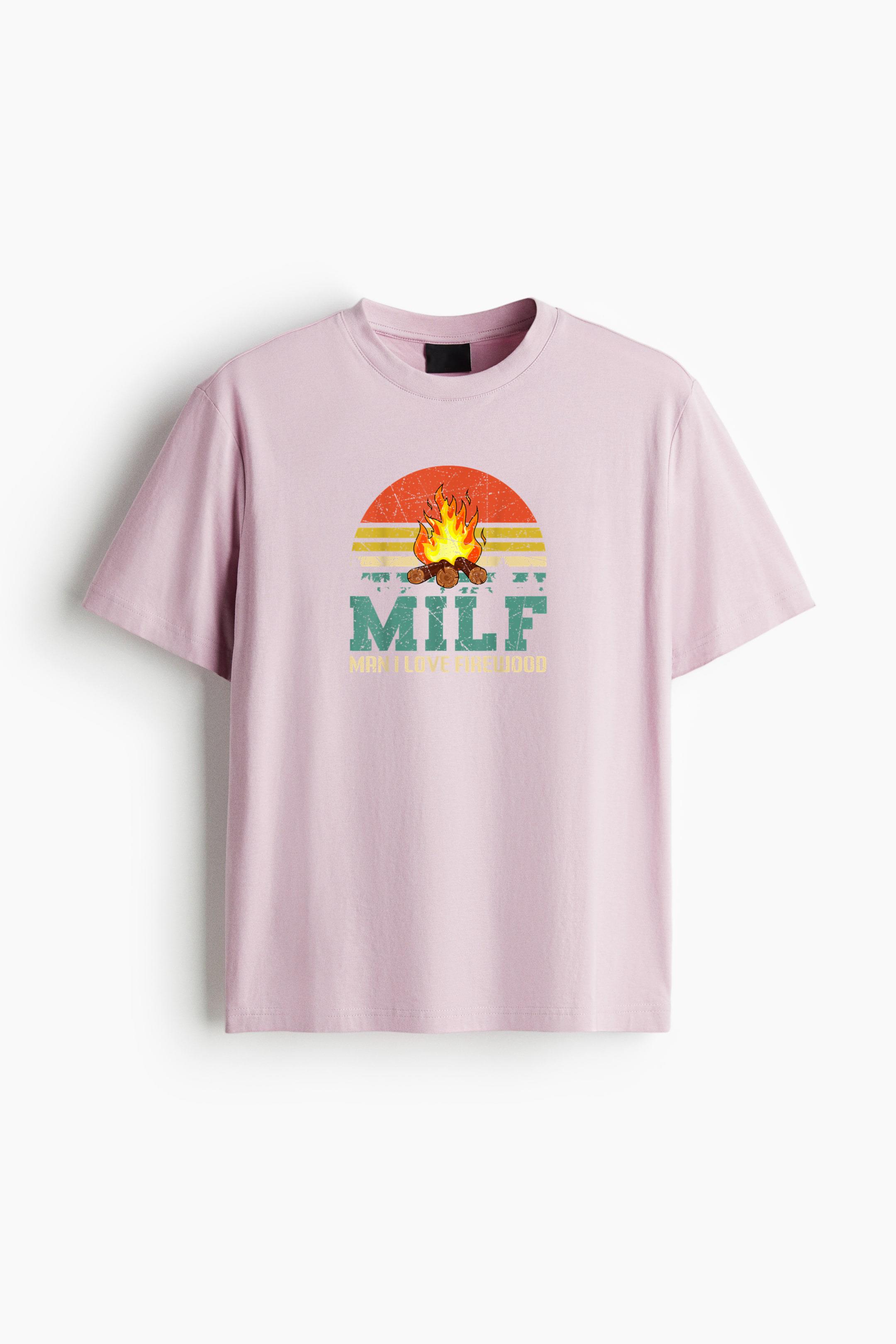MILF Man I Love Firewood Funny Camping Cotton T-Shirt Cotton T-Shirt – Straight-Cut Soft Cotton Jersey Tee with Ribbed Crew Neck and Dropped Shoulders