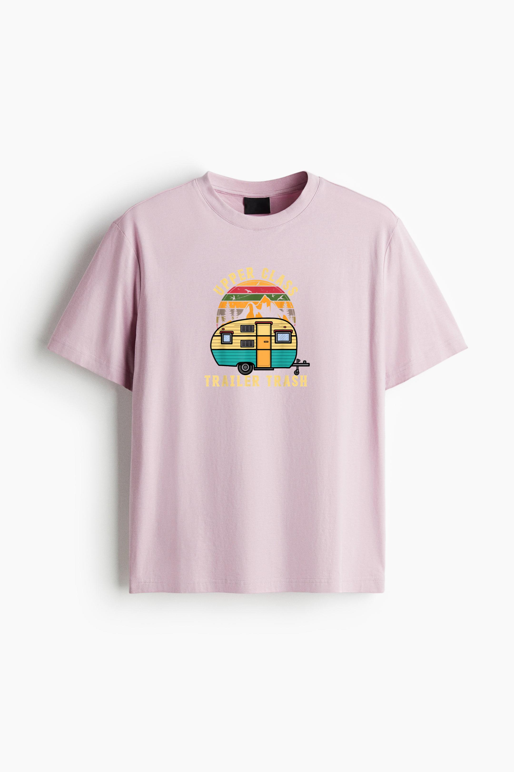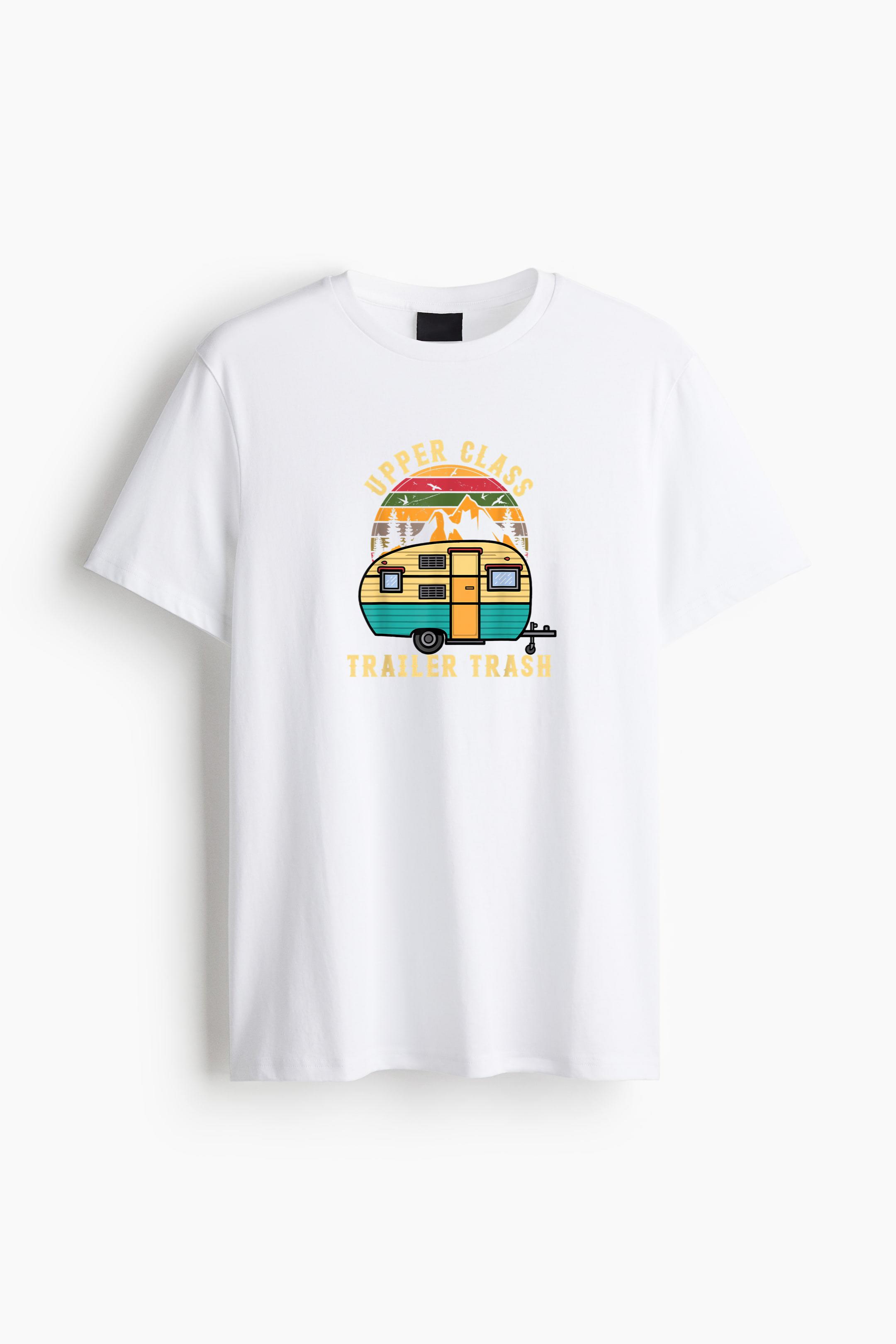 RV Camping Upper Class Trailer Trash Camper Cotton T-Shirt Cotton T-Shirt – Straight-Cut Soft Cotton Jersey Tee with Ribbed Crew Neck and Dropped Shoulders